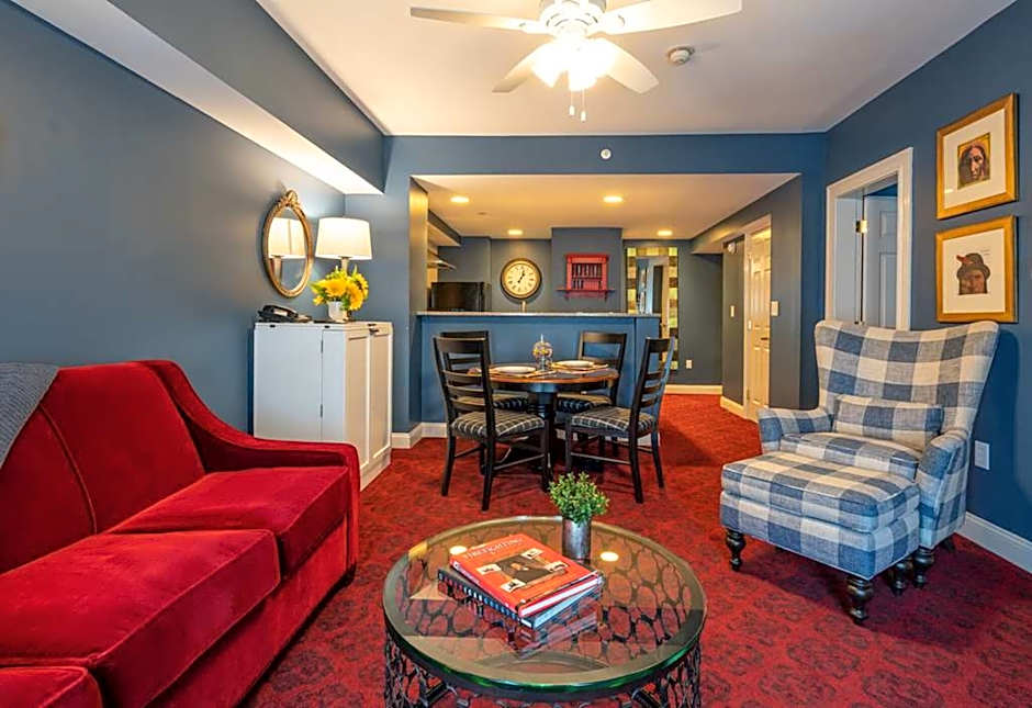 This suite features a fireplace and a work desk.
